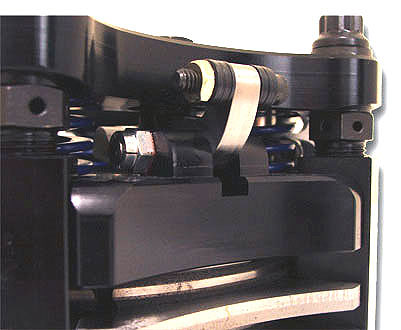 The new shoe assembly has more heatsink mass and is pocketed for the “die