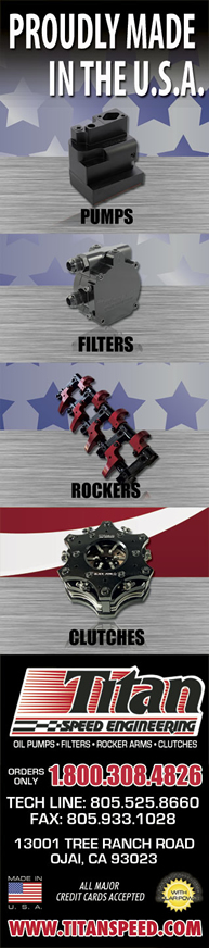 The products in this section further demonstrate how Titan meets the needs of customers who encounter a recurring problem. For example, after several nitro and alcohol racers reported frequent blower-belt failures, we went to work designing a "crowned" idler pulley that successfully extended the lives of belts and blower drives. When supercharged-Chevy teams complained of premature valve-spring failure, Titan engineers These and other problem-solving innovations are detailed in this section. Each item is manufactured to the |